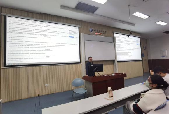 韩文龙副院长首先对永利yl8886官网推荐免试研究生工作实施细则进行了解读,逐条阐释了推免细则中重要的条例,并提醒学生提前做好准备工作。之后,他将本科生毕业论文抽检相关办法告知学生,通过案例警示教育,希望同学们养成遵守学术德道和规范的好习惯,认真学好专业知识,全方面提升科研素养和创新能力,为保质保量完成大四阶段的毕业论文打下坚实基础。