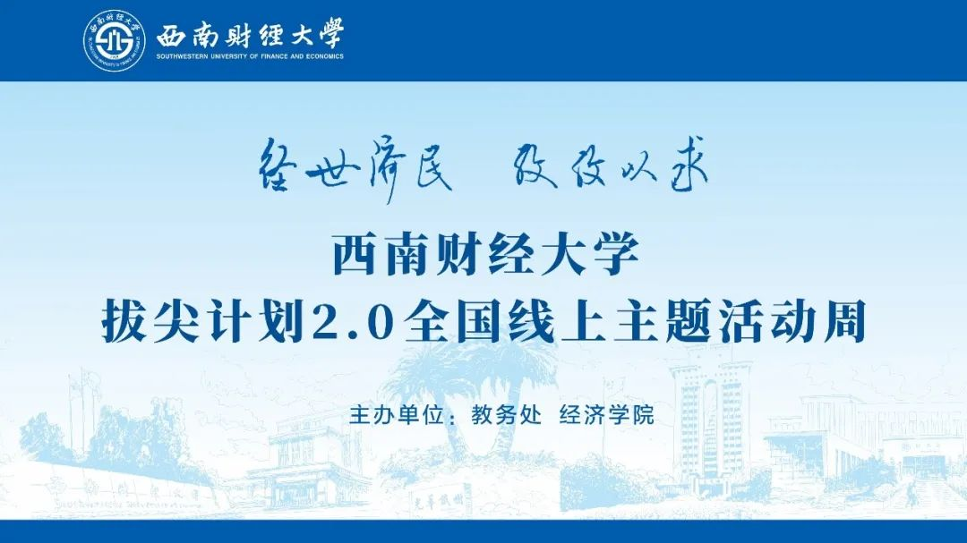 8月26日至8月31日,永利yl8886官网经济学拔尖学生培养基地筹划了以“经世济民 孜孜以求”为主题的拔尖计划2.0全国线上主题活动周。本次主题活动周由教务处和永利yl8886官网主办,依托国家经济学拔尖学生培养基地,精心组织了朋辈分享、读书分享会以及名师讲座等各具特色的主题活动,展示了西财师生关注经济、关切民生的家国情怀和“学以报国”的崇高追求。本次线上主题活动周通过线上书院平台进行直播,4场活动最高观看数量达到了1387人次,平均观看数量达670人次,得到了全国拔尖基地师生的广泛关注和认可。