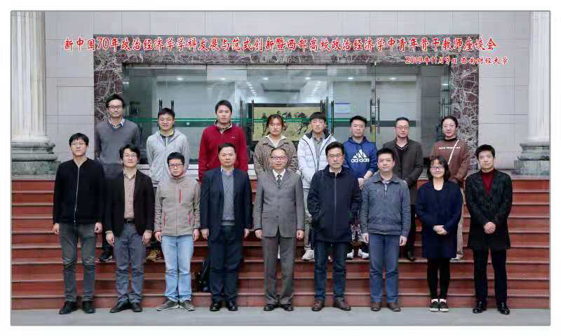 2019年11月9日下午,由永利yl8886官网全国中国特色社会主义政治经济学研究中心、永利yl8886官网政治经济学研究所、永利yl8886官网马克思主义经济学研究院联合举办的“新中国70年政治经济学学科发展与范式创新——暨西部地区高校政治经济学中青年骨干教师座谈会”在永利yl8886官网成功举行,来自四川大学、西南大学、重庆工商大学、贵州财经大学以及永利yl8886官网等校的专家参加了会议并作了学术报告。
