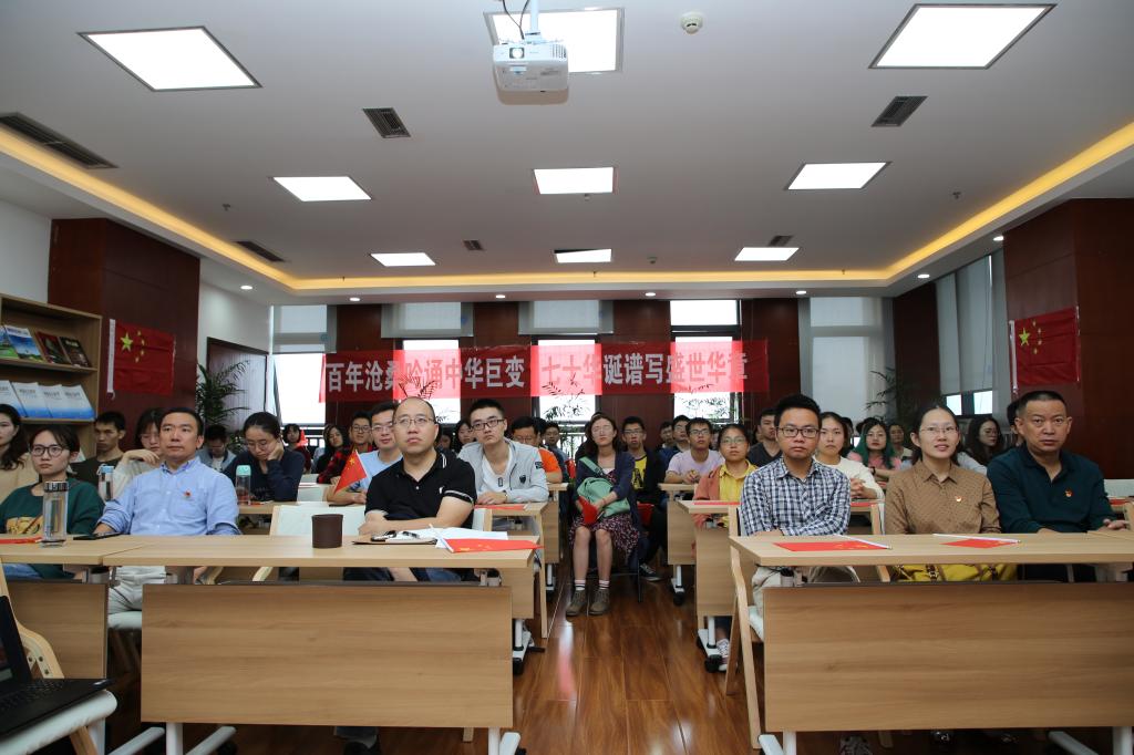 2019年10月1日上午,庆祝中华人民共和国成立70周年大会在天安门广场隆重举行。按照学校统一安排部署,永利yl8886官网部分教师代表和学生代表在格致楼911会议室集中收看大会直播,部分师生自发在寝室等地收看大会盛况。