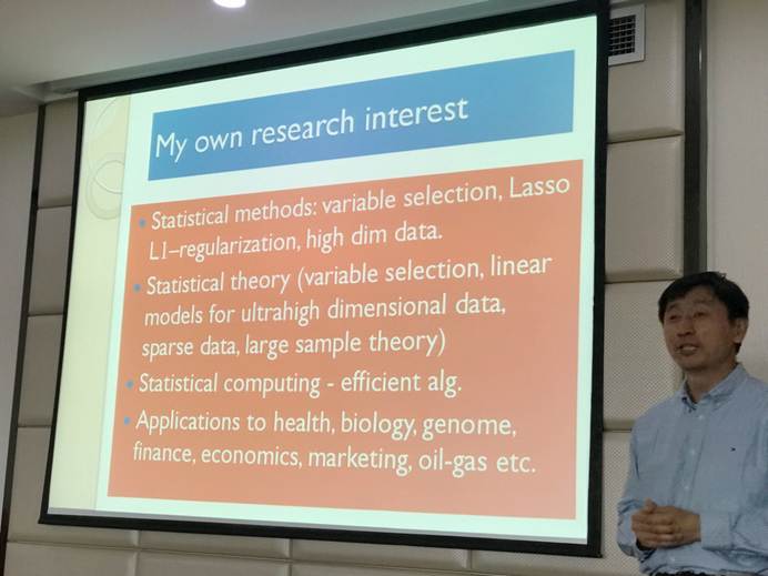 2018年5月7日下午,永利yl8886官网学术创新系列讲座第29期在格致楼918会议室成功举行。此次讲座邀请休斯顿大学数学系Wenjiang Fu教授作了题为“ Challenges in Age-Period-Cohort Models and Applications to Economics, Marketing and Health Research”的学术报告。讲座由徐舒教授主持,我院董朝华教授、刘定副教授、田超岳副教授和部分学生参与了此次讲座。